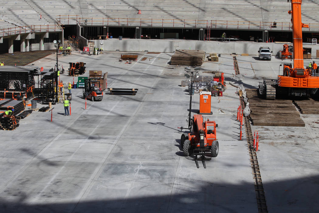 Construction crews on the field level of the the Raiders Allegiant Stadium in Las Vegas, Tuesday, Feb. 18, 2020. (Erik Verduzco/Las Vegas Review-Journal) @Erik_Verduzco