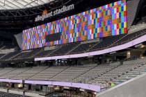 Crews at Allegiant Stadium gave an artificial glimpse Wednesday of what the 65,000-seat facility will look like on Raiders game days.