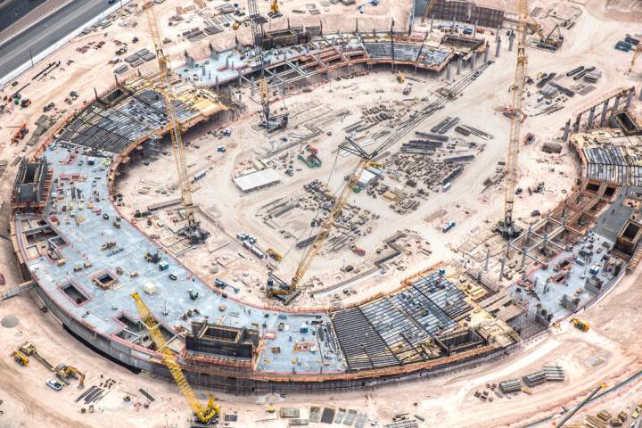 Stadium builders reached a critical stage in the construction of Las Vegas’ 65,000-seat, $1.8 billion indoor football stadium this week as they took the first step toward going vertical.