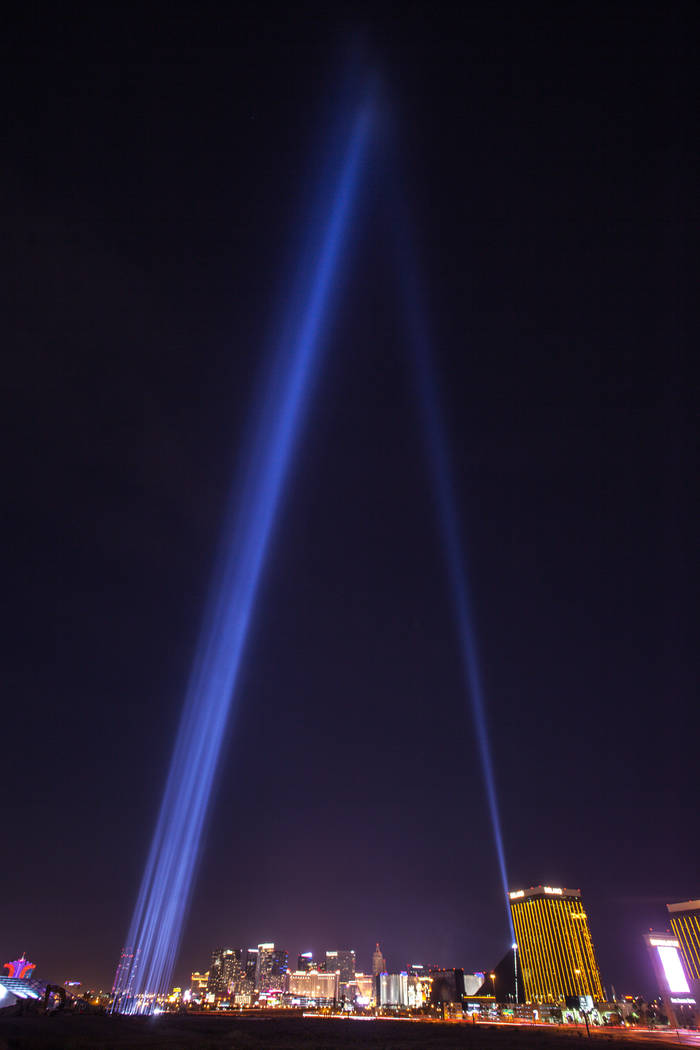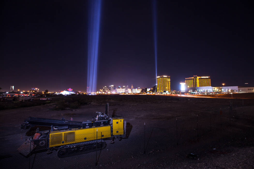 The historic ceremonial event after sunset, which included a tribute to the 58 people who died in the Oct. 1 mass shooting, was the team’s most visual display of committing to building a $1.9 billion, 65,000-seat domed football stadium and bringing the NFL to Southern Nevada, an idea most believed impossible just two years ago.