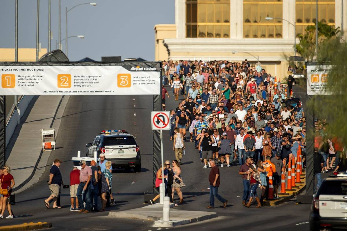 “We heard no reports of traffic issues at T-Mobile Arena or on the Strip due to the challenges we had at Allegiant Stadium,” Badain said. “Most of the issues were confined to Russell Road and to Dean Martin (Drive). We’ve had a handful of meetings already internally and with some of the outside agencies — Metro, fire, the county public works.”