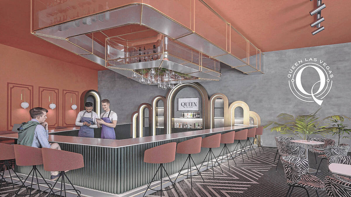 Operating as a hotel partner, Queen Las Vegas’ hotel will have 28-themed rooms and communal areas, renovating some of the rooms in the 75-year-old building that’s currently the Thunderbird Hotel, according to the release. Thunderbird will continue to operate its hotel with the 72 remaining rooms. Q Group plans to add tech-savvy hospitality elements such as self-serve check-in kiosks. When complete, the Queen’s suites will have direct VIP access to the bar and nightclub.