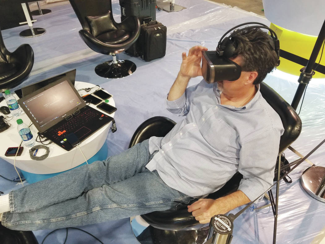 Jeff Miller, U.S. sales director for Israeli graphic arts company HumanEyes, adds video to a virtual reality headset at the Las Vegas Convention Center on Sunday, April 8, 2018. Miller will showcase his company’s products at the annual National Association of Broadcasters convention. Wade Tyler Millward/Las Vegas Review-Journal