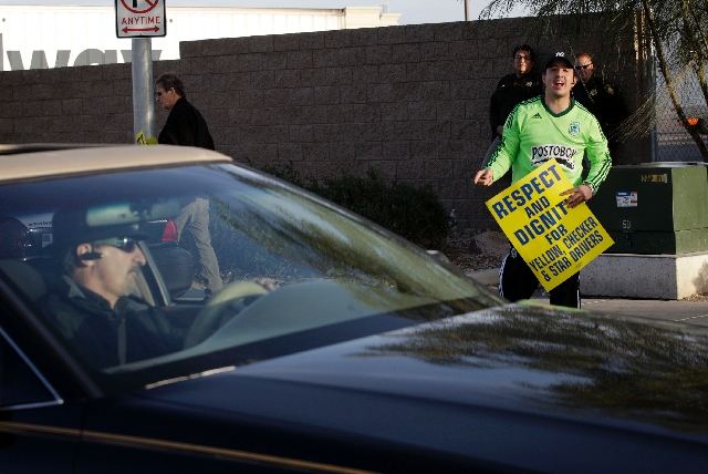 Late Tuesday, drivers staged a demonstration at Flamingo Road and Las Vegas Boulevard, encouraging union drivers from other companies to join them.