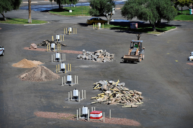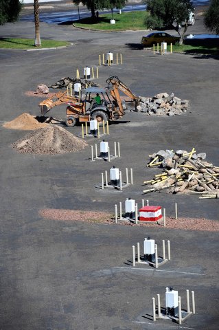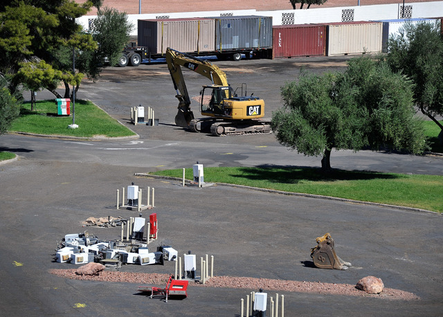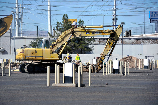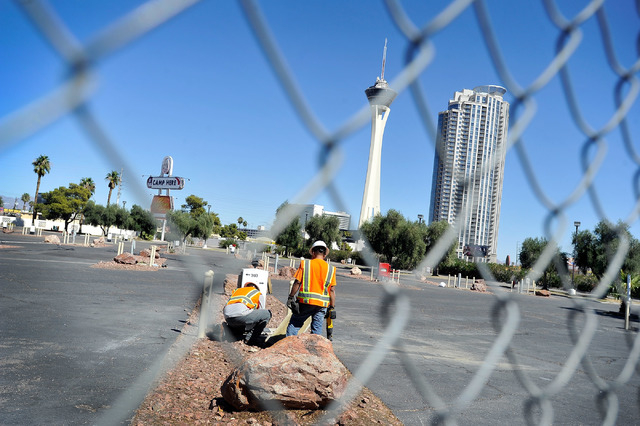 Construction crews work to dismantle the former KOA RV park at Circus Circus on Friday, Oct. 3, 2014. MGM Resorts International announced this week the Circus Circus RV park had closed and would be renovated to include 170 spaces. Some of the parkճ land will be used for the $40 million open-air concert venue that MGM Resorts is creating on 40 acres at the corner of Sahara Avenue and the Strip. (David Becker/Las Vegas Review-Journal)