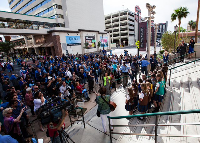 The crowd also heard presentations by Tom Collins, chairman of the Las Vegas Convention and Visitors Authority; Kara Kelley, executive director of the Nevada Sesquicentennial Commission; and Jonathan Ullman, executive director and CEO of the Mob Museum.