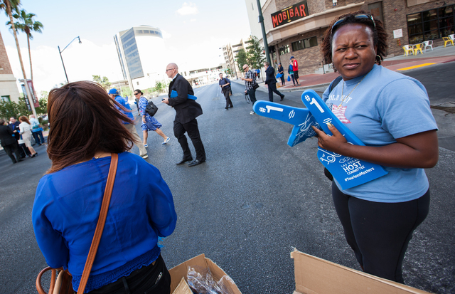 About 300 tourism workers rallied at the National Museum of Organized Crime and Law Enforcement in downtown Las Vegas to celebrate National Travel and Tourism Week, technically a nine-day observance that nearly 15 million tourism industry employees nationwide are sharing.
