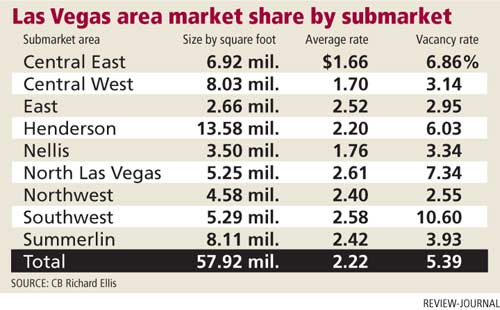 CB reported a first-quarter vacancy rate of 5.39 percent for nearly 58 million square feet of rentable retail space in the valley, up from about 4.8 percent in the previous quarter. The rate marks an eight-year high. Despite increased vacancy, average asking monthly lease rates rose in the quarter to $2.22 a square foot, up a nickel from last quarter, Shute said.