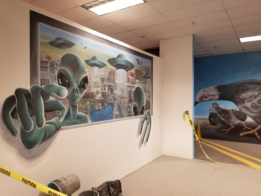 The mural room will have about 60 pieces of 3-D art by around six artists. A photo shot at the right angle makes the piece pop out.