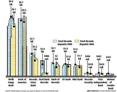 By contrast, federal statistics show that Bank of America's total Nevada deposits dropped by $411 million, or 4 percent, to $9.1 billion.