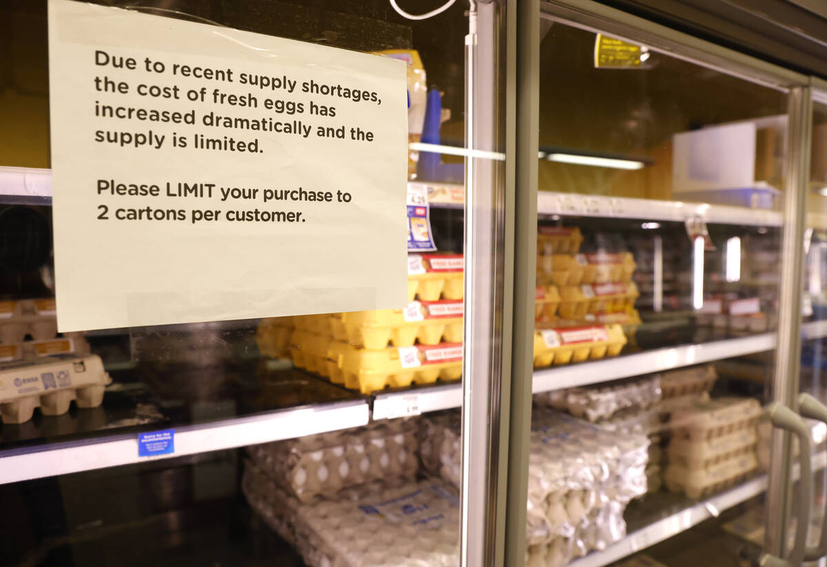 Nevadans feel the effects more than other states because of legislation passed in 2021 that restricts non-cage-free eggs or egg products from being sold in Nevada, which is making the shortage “even more pronounced,” according to the Retail Association of Nevada. Nevada is one of 10 states with cage-free egg laws.