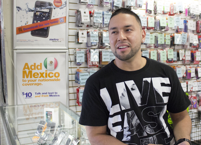 At Bonanza Indoor Swap Meet, Donald Perez, who moved from Long Island, N.Y., three months ago, oversees his mother’s cellphone and shoe stores with help from his younger brother and girlfriend.