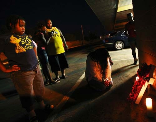 Dameishia Howard said a prayer at the impromptu memorial for the baby, keeping her voice quiet so she wouldn't wake her son, who was snoring softly in her arms.