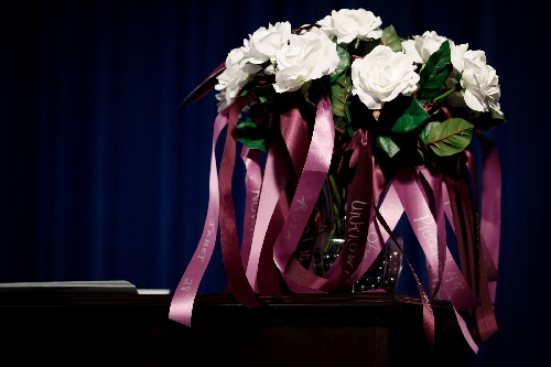 Seventeen Clark County residents died as a result of domestic violence between July 1, 2011, and June 30, 2012, Las Vegas police said. Their names were read aloud at Monday's ceremony and placed on a memorial plaque. White roses representing the victims were placed in a vase.