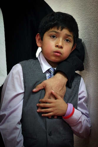 Little Alejandro, now 5 years old, does not understand the grief on his father's face, but his presence is comforting.