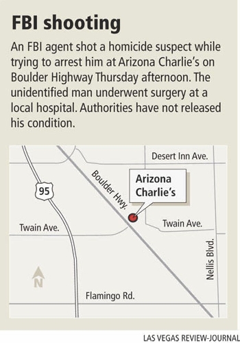 An FBI agent shot a murder suspect while trying to arrest him Thursday at Arizona Charlie's on Boulder Highway, at least the third shooting by an FBI agent in Southern Nevada since 1992.