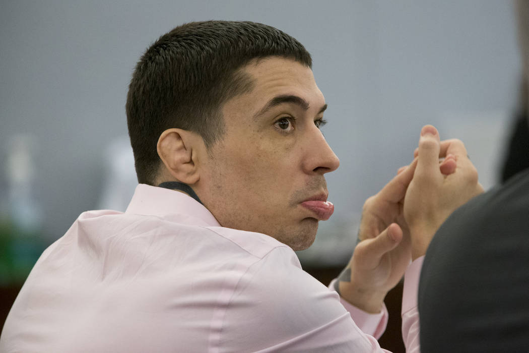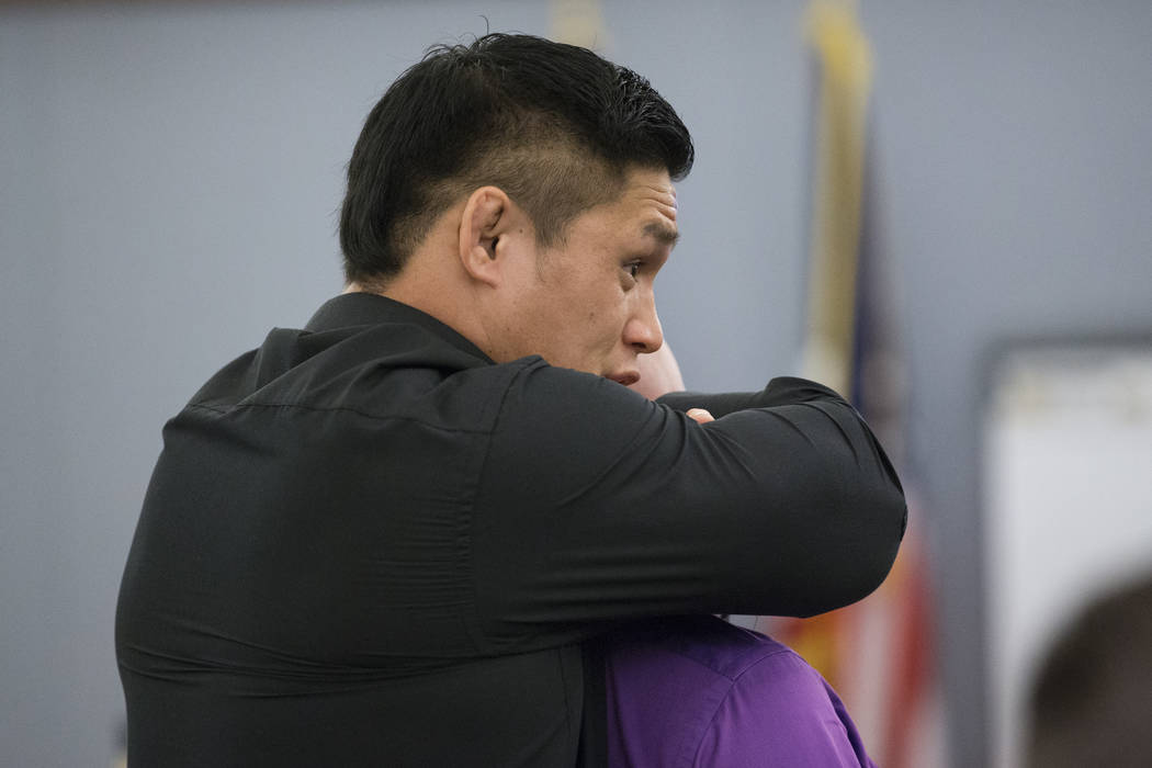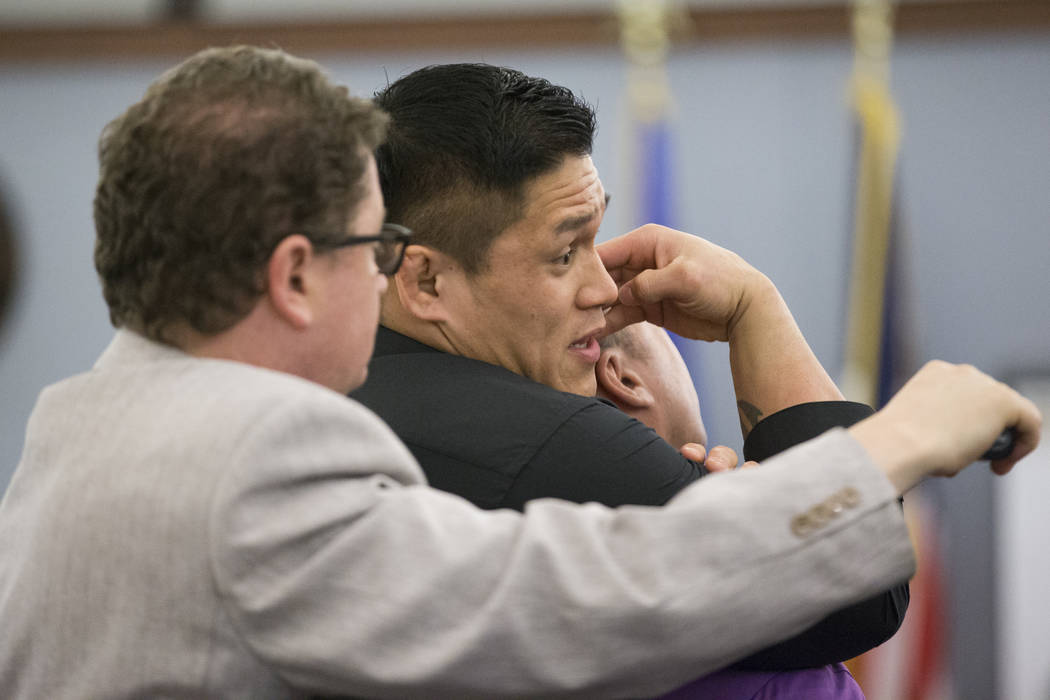Standing in the center of the courtroom in front of the jury box, Terrado squeezed his arms around the torso of the defense lawyer, who is taller than the witness and also well-built. The latter maneuver, Terrado said, is an effort to “control position of your opponent” and to “wear them down.”