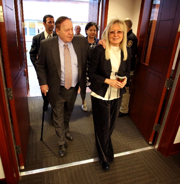 Questioning was halted at one point because Adelson was taking notes, an unusual practice for a witness. Bare allowed it but did not want him to simultaneously write and talk.