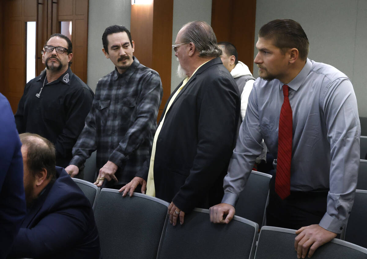 Prosecutors have accused Devries of being the president of the Las Vegas Hells Angels chapter, and that Smith and Alo, who were arrested with Devries shortly after the shooting, are “prospects.” Treich and Rodriguez are full-patch members, Chun is another “prospect,” and Mollasgo and Padilla were described as associates of the organization, also called “hangarounds.”