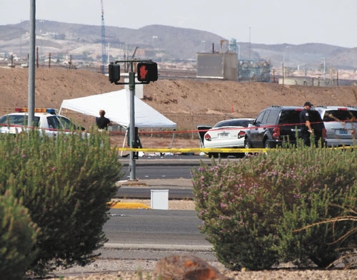 The homicide was a Las Vegas police case, and Metropolitan Police Department officers were present during the shooting, but none of them fired their guns.