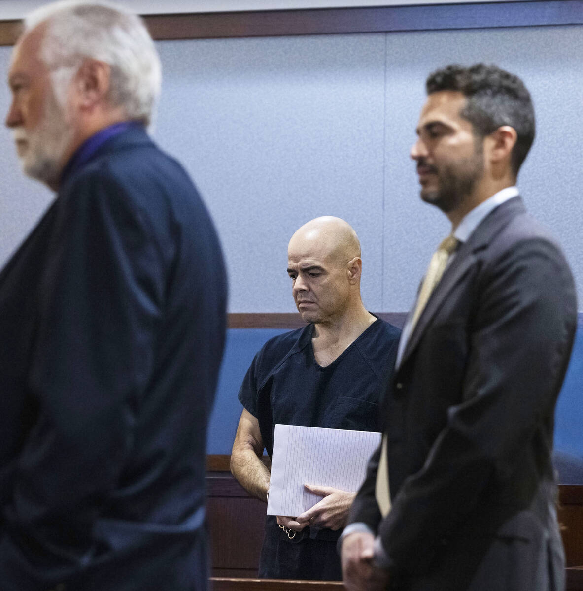 During a morning court hearing, attorney Travis Shetler said his client — who intends to seek bail on his murder charge — could fulfill his job through phone and video calls from the Clark County Detention Center, where he’s been held since his arrest.