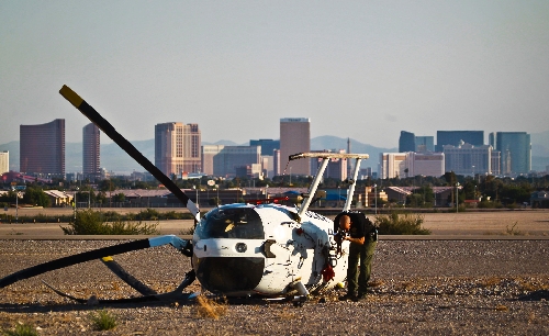 According to Federal Aviation Administration records, the helicopter was manufactured in 1998 and is one of four Hughes/McDonnell Douglas MD 500-series rotorcraft in the department's fleet of seven helicopters and one fixed-wing aircraft. The department's Air Support Unit, which has about 22 pilots, is based at the North Las Vegas Airport.
