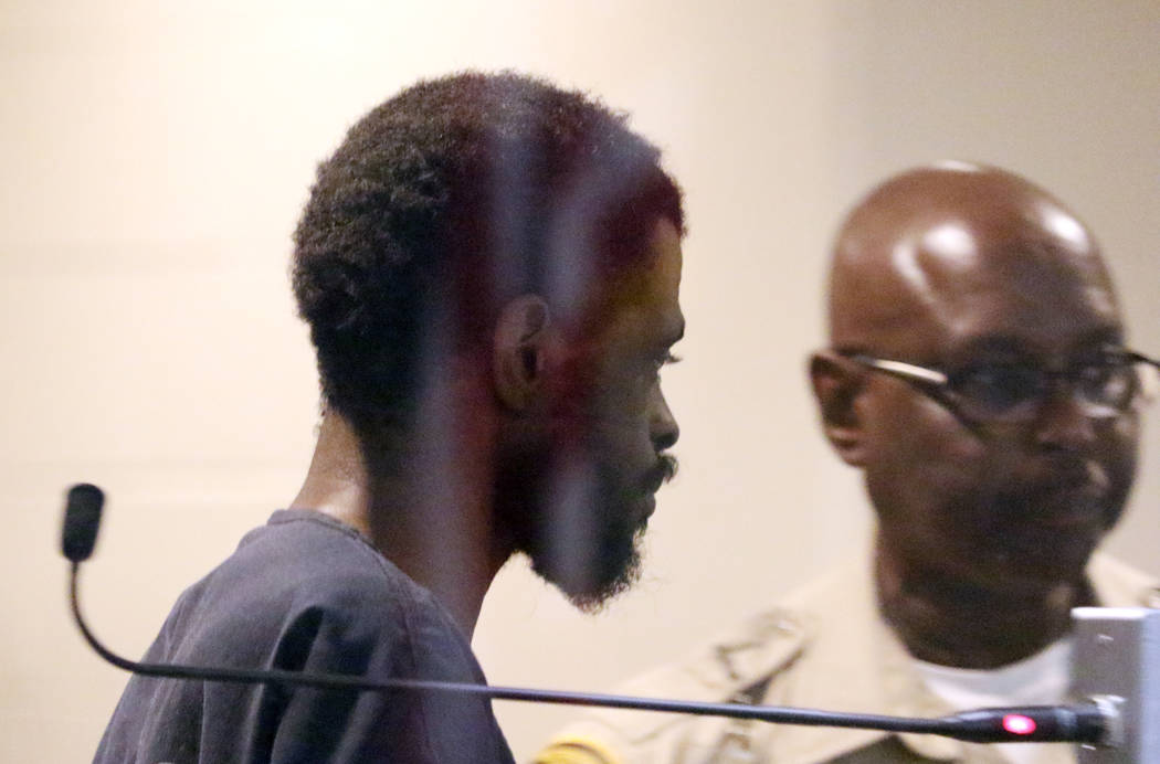 On Friday morning, Taylor stood shackled in a jail jumpsuit next to a microphone behind a glass partition in a lower level courtroom at the Regional Justice Center.