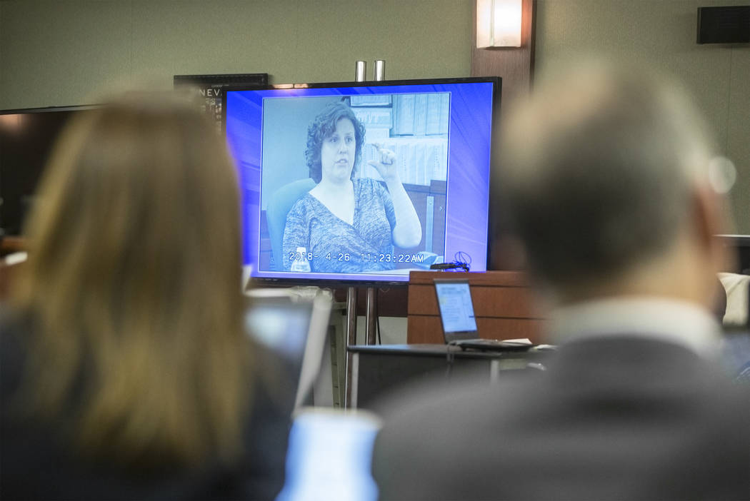 Witness Amy Lawrence gives video testimony during magician David Copperfield’s civil trial at the Regional Justice Center on Monday, April 30, 2018, in Las Vegas. Benjamin Hager Las Vegas Review-Journal @benjaminhphoto