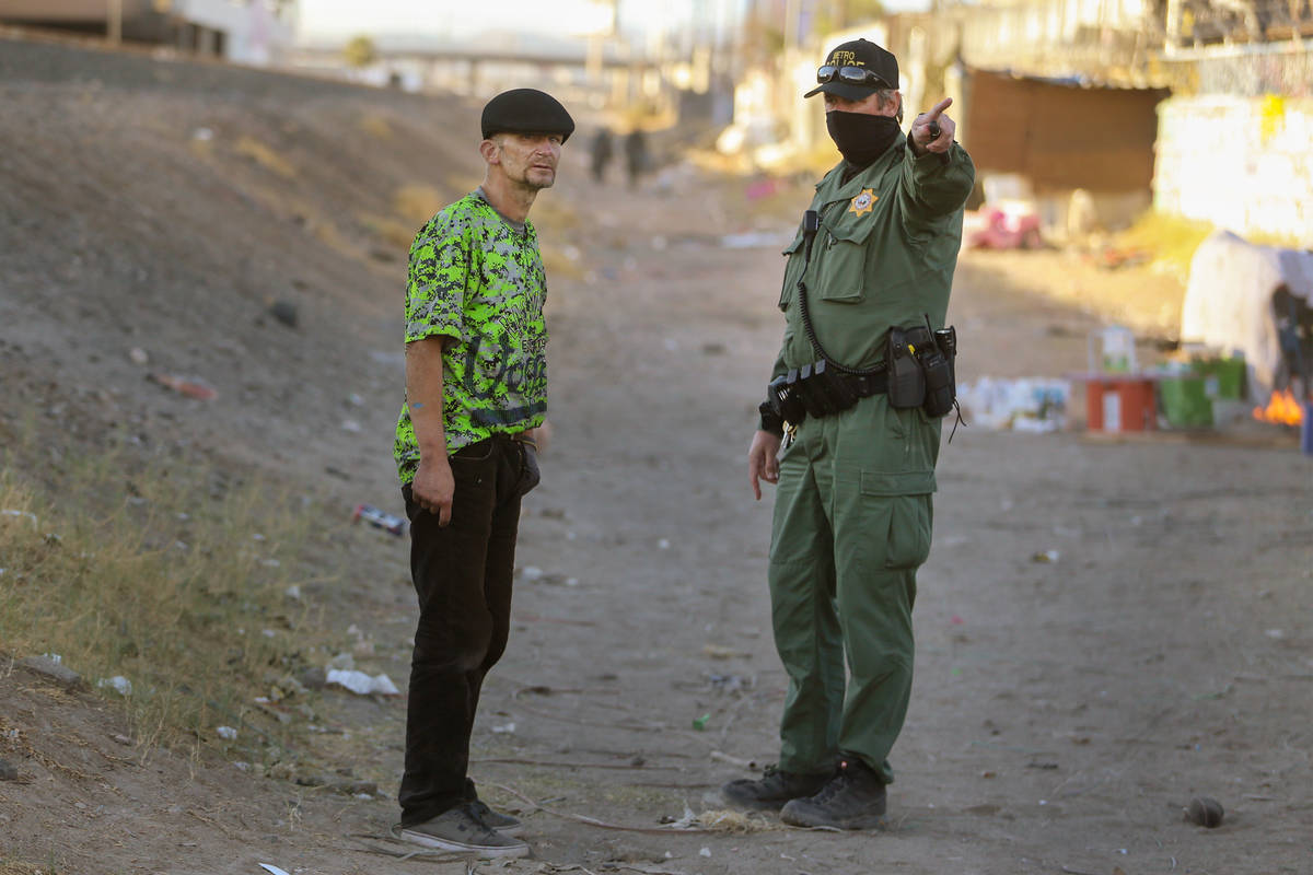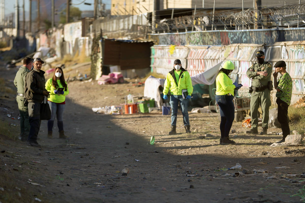 On a recent cold November morning, Frederick went out with the outreach team to an encampment off Oakey Boulevard and Industrial Road. A fire made to keep residents warm had erupted earlier that morning, and the boots of officers and social service providers crunched over people’s charred belongings.