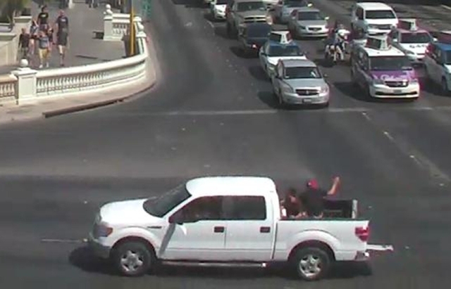 Authorities have released a photo of the pickup as it sped on Flamingo Road at the intersection of Las Vegas Boulevard.