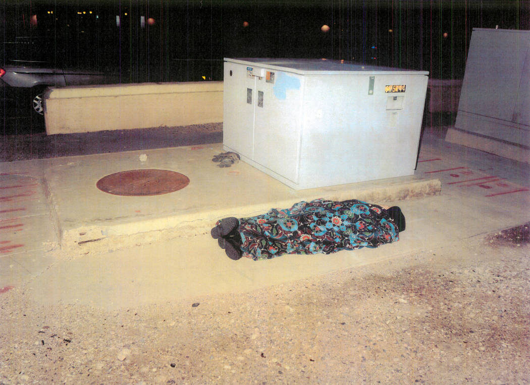 Metro staged the dummy to look like a sleeping homeless man, tucked in a floral print blanket, wearing black boots and a hooded sweatshirt. At the time, police were trying to develop leads in the killings of two middle-age homeless men.