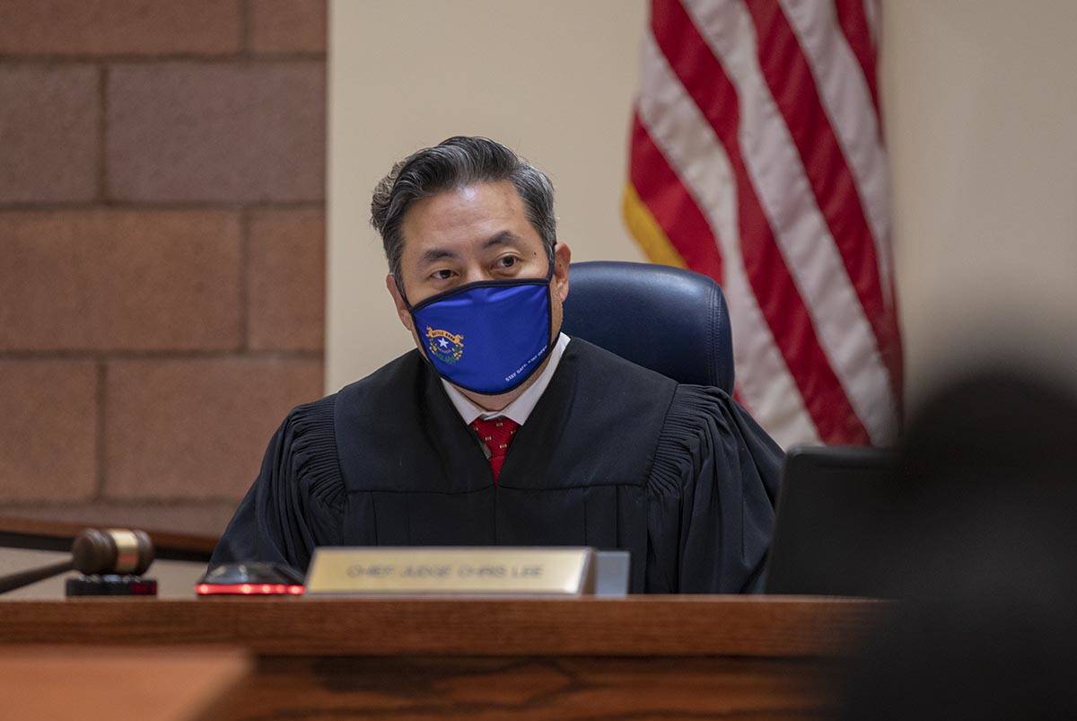 A security officer accused of shooting and killing a man after a quarrel over COVID-19 restrictions made her first court appearance Monday in North Las Vegas Justice Court.