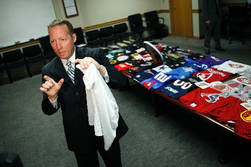 Michael Harris, assistant special agent in charge, said the counterfeit sports gear is just a slice of a bigger illegal movement of phony merchandise that ranges from fake car parts and contact lenses to medicine.