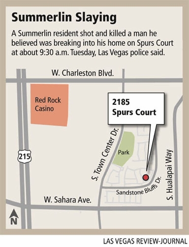Las Vegas police said the resident, who was not identified by police, shot and killed a man about 9:30 a.m. in the 2100 block of Spurs Court, near Town Center Drive and Sahara Avenue.