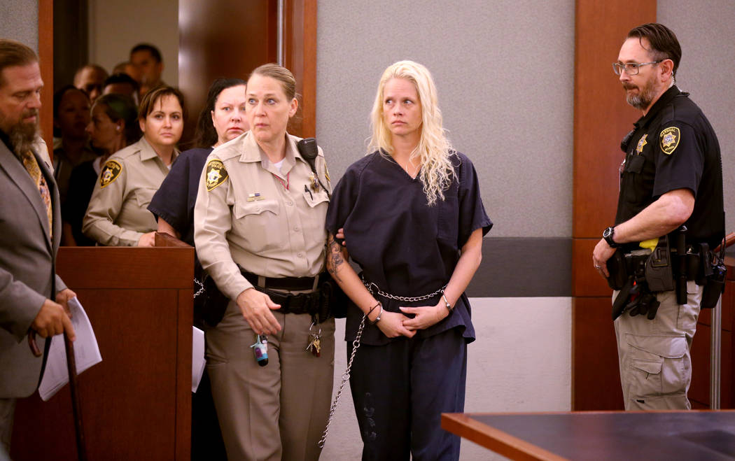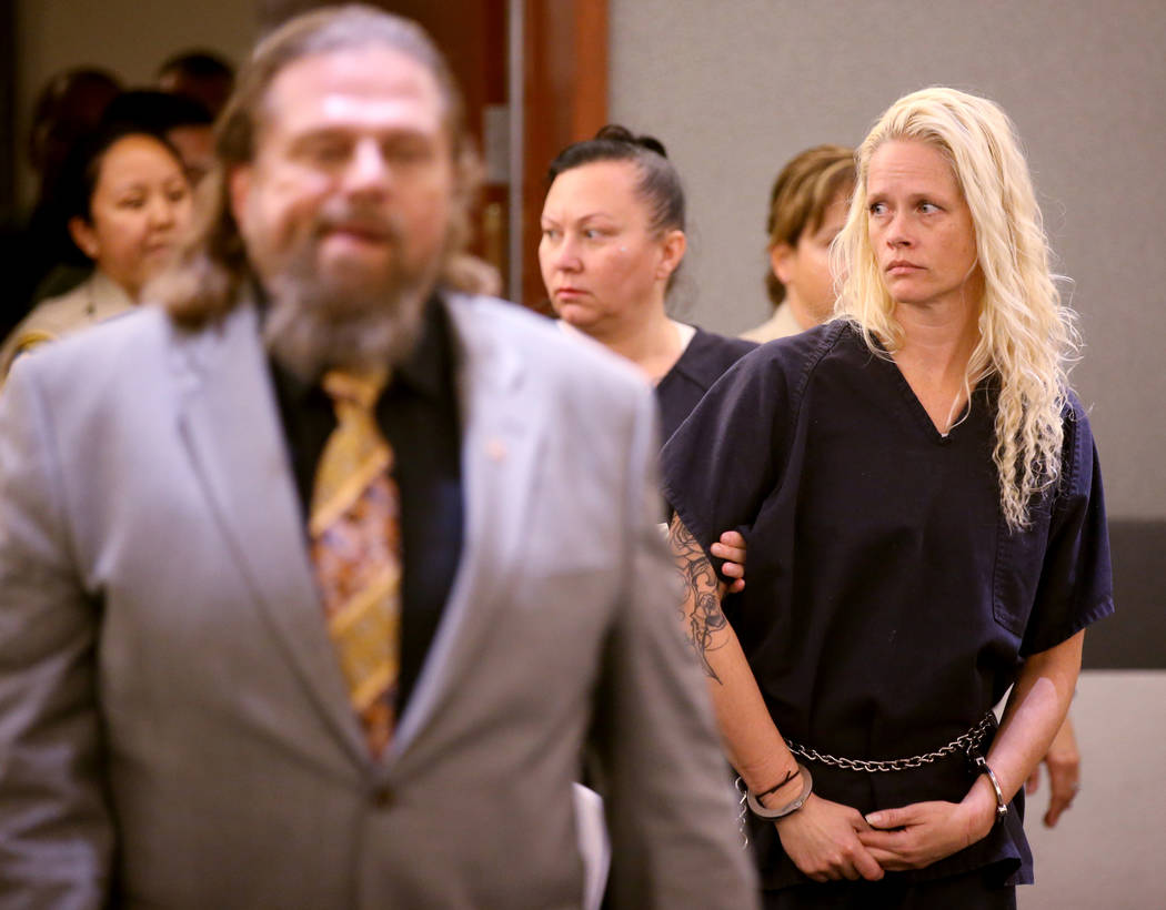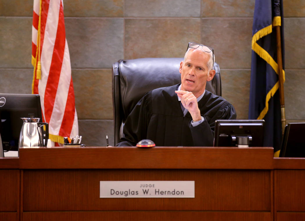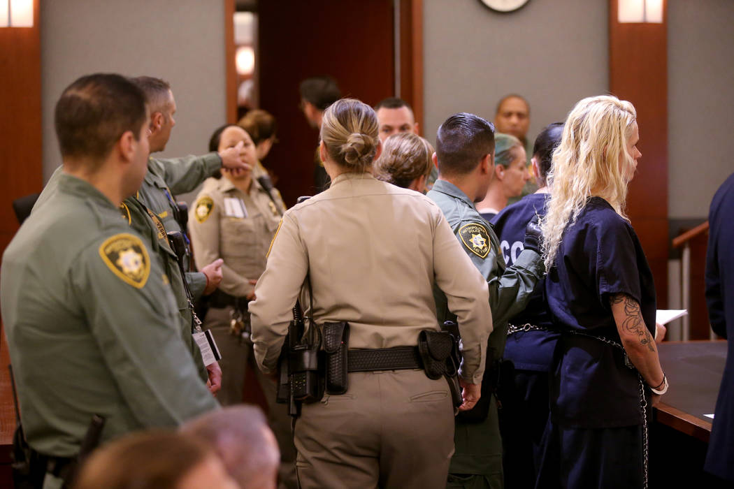 Thirteen of those defendants, who are being held in the Clark County Detention Center, appeared briefly before District Judge Douglas Herndon in a courtroom packed with law enforcement officers and several family members.