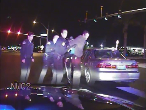 Such an event would not have been captured on video in Las Vegas because the Metropolitan Police Department doesn't have cameras in cars.