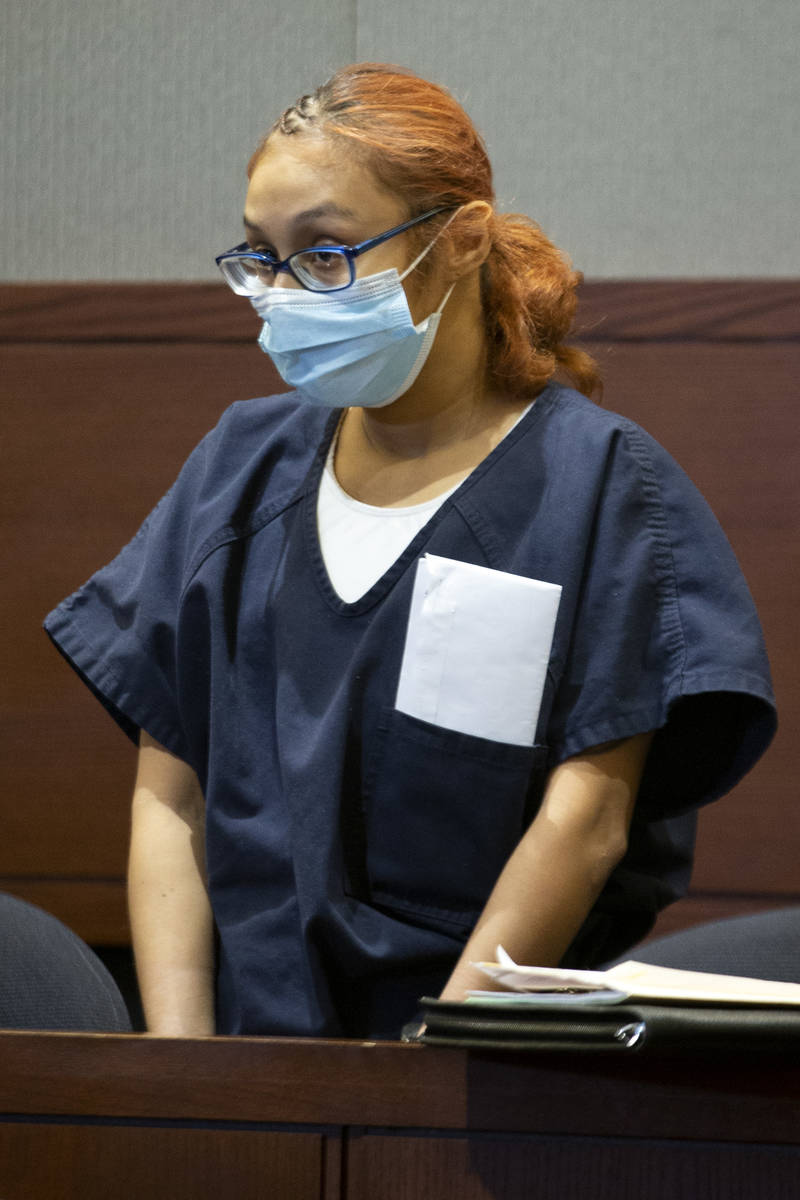 Jasmin Vargas appears in court for a hearing at the Regional Justice Center on Tuesday, Jan. 5, 2021, in Las Vegas. Vargas faces charges of child abuse or neglect in the fatal shooting of her 3-year-old son. (Ellen Schmidt/Las Vegas Review-Journal) @ellenschmidttt