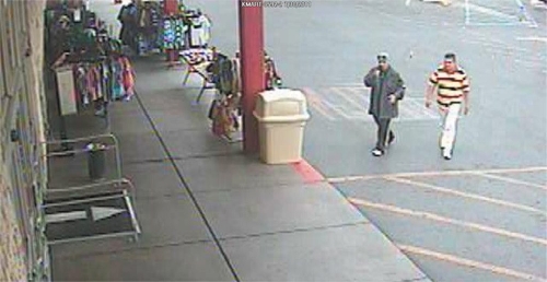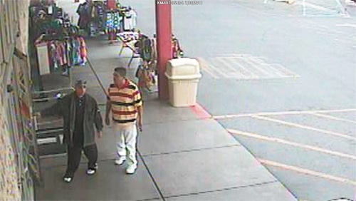 The other suspect is between the ages of 30 and 40 and between 5 feet 7 inches and 5 feet 10 inches tall. He was wearing a short-sleeve shirt with horizontal stripes and white pants and shoes.