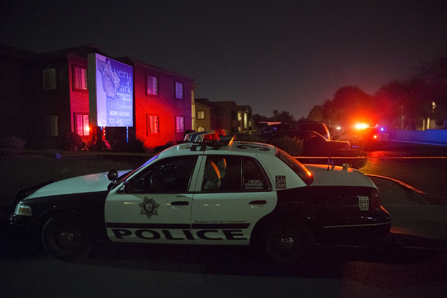 Police responded about 6:15 p.m. Tuesday to an apartment complex in the 2200 block of North Torrey Pines Drive, near the intersection with West Smoke Ranch Road, to investigate reports of gunshots.