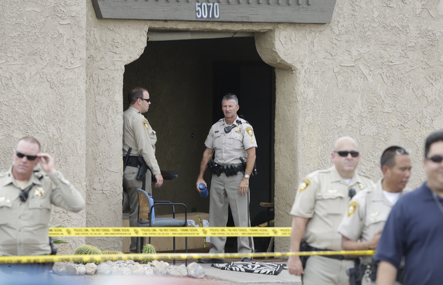 A 911 caller first reported a man walking around “covered in blood” about 12:15 p.m. at Palo Verde Villas, an apartment complex at 5070 Palo Verde Road, near Tropicana Avenue and Paradise Road, the Metropolitan Police Department said Tuesday.