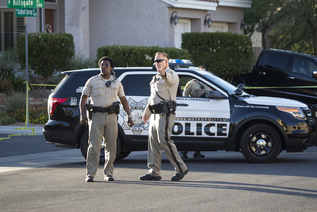 The woman killed was in her 80s, and she was shot in the middle of the street on the 2100 block of Henniker Way, near Lake Mead and Rampart boulevards, Metropolitan Police Department spokesman Larry Hadfield said.