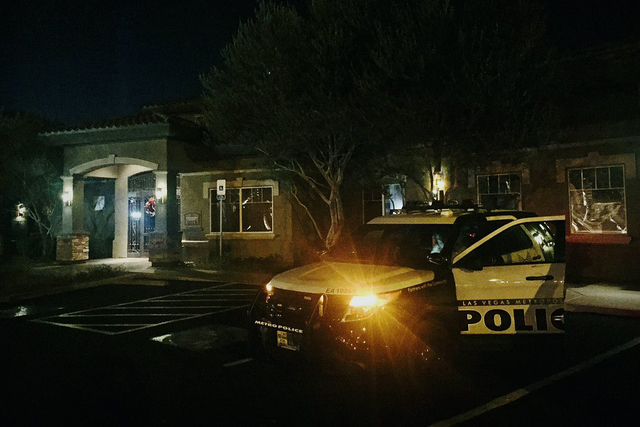 Officers were working a routine call at The Covington at Coronado Ranch, 7800 S. Rainbow Blvd., Tuesday when they heard three gunshots from a different building in the complex about 8:20 p.m., according to the Metropolitan Police Department arrest report.