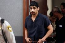 A 39-year-old man is in jail on a murder charge in connection with the slaying of a man who was shot at least 10 times in late May inside an apartment in the central Las Vegas Valley.
