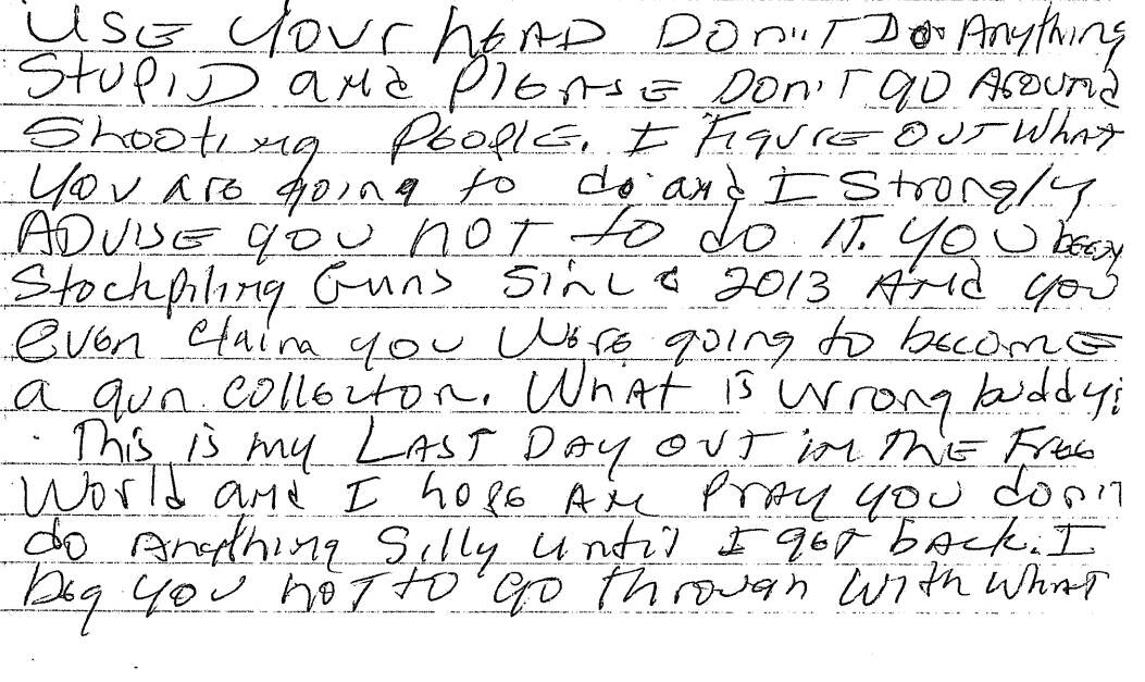 Black and white copies of Nixon’s handwritten letters, released by the Metropolitan Police Department last month, portray Nixon as growing increasingly concerned with Paddock’s apparent talk of guns and possibly harming people.
