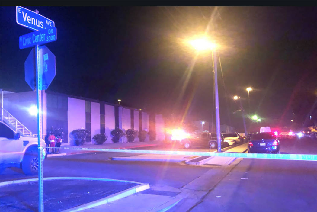 The spate of gun violence began at 9:40 p.m. Friday in North Las Vegas, when a 20-year-old man was found fatally shot in the torso on the 3300 block of Civic Center Drive.