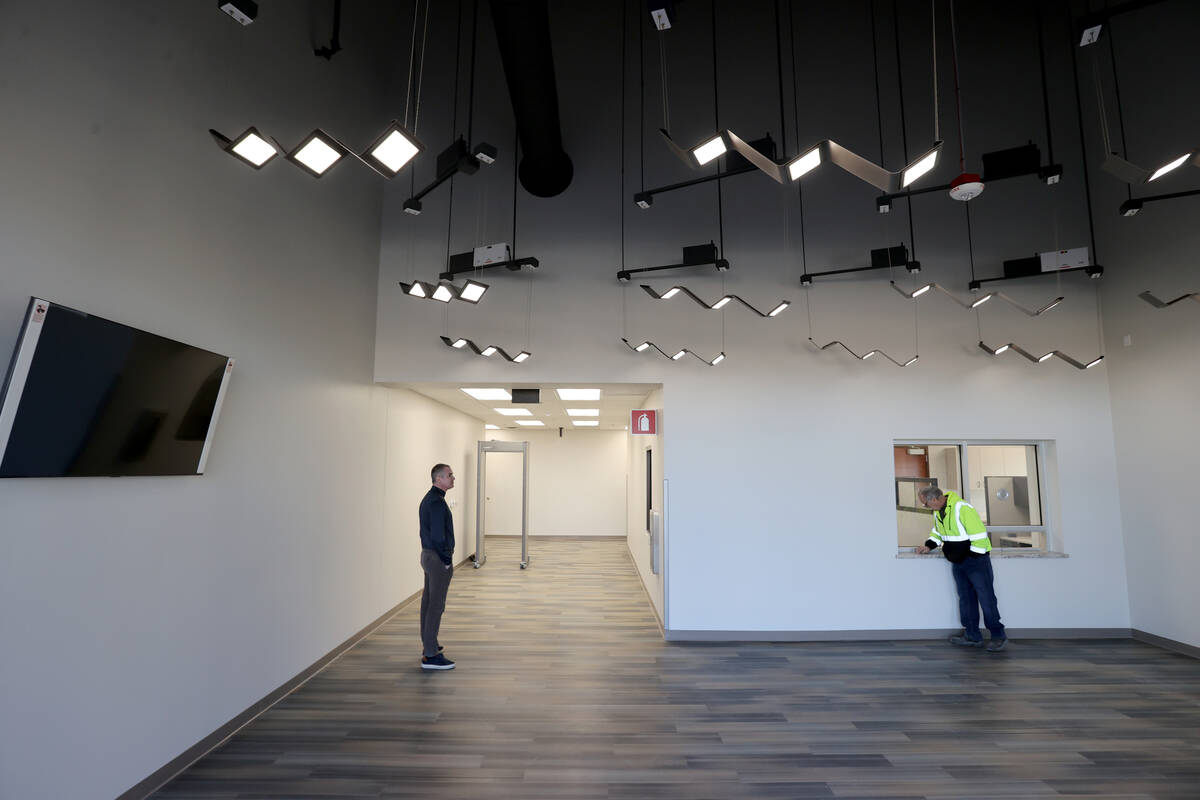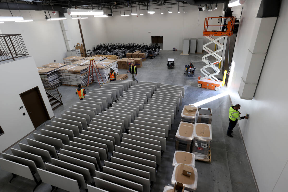 Workers put finishing touches at the Reality Based Training Center, that will prepare first responders for terrorist attacks and mass shootings, is shown in Las Vegas, Monday, Feb. 7, 2022. The Metropolitan Police Department is scheduled to move in the sprawling complex at 7370 E. Carey Road next week. (K.M. Cannon/Las Vegas Review-Journal) @KMCannonPhoto