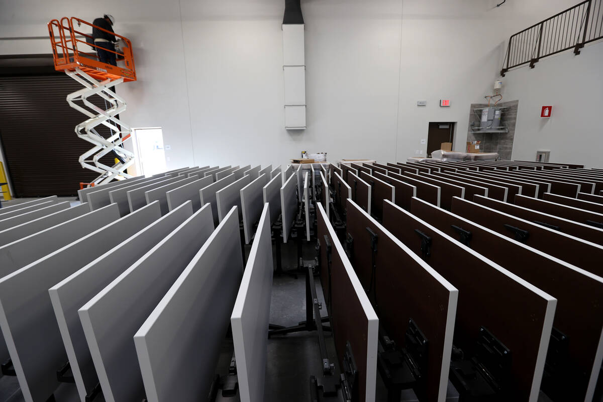 Desks and chairs are ready for instalation at the Reality Based Training Center, that will prepare first responders for terrorist attacks and mass shootings, is shown in Las Vegas, Monday, Feb. 7, 2022. The Metropolitan Police Department is scheduled to move in the sprawling complex at 7370 E. Carey Road next week. (K.M. Cannon/Las Vegas Review-Journal) @KMCannonPhoto