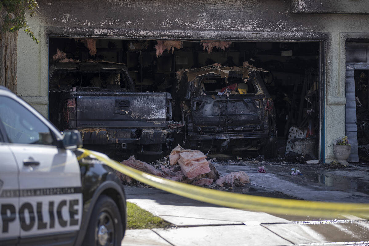 Clark County firefighters found the fire engulfing two vehicles inside the garage, according to a statement from Assistant Fire Chief Dan Heenan.