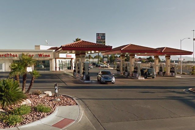 The Metropolitan Police Department said officers responded at about 12:15 a.m. to calls that a man was harassing customers at the gas station, 7100 W. Lake Mead Blvd.