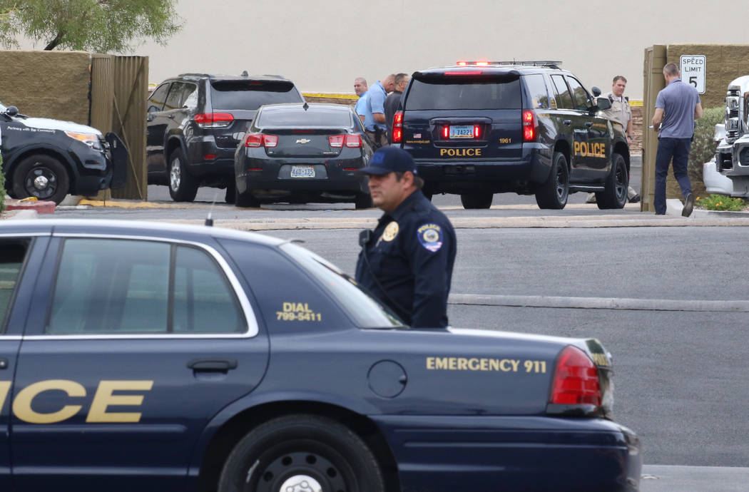 Police respond to a robbery that turned into a barricade situation at the 7700 block of South Rainbow Boulevard in Las Vegas on Sept 23, 2019. (Bizuayehu Tesfaye/Las Vegas Review-Journal)